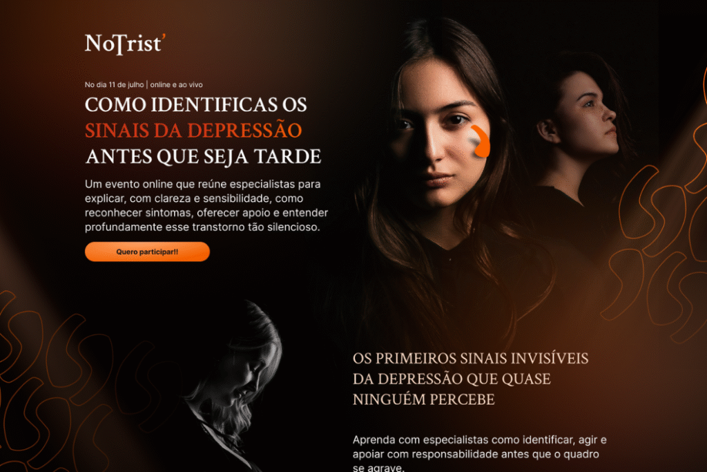 Landing page criada para promover evento sobre consciência e prevenção da depressão e saúde emocional.