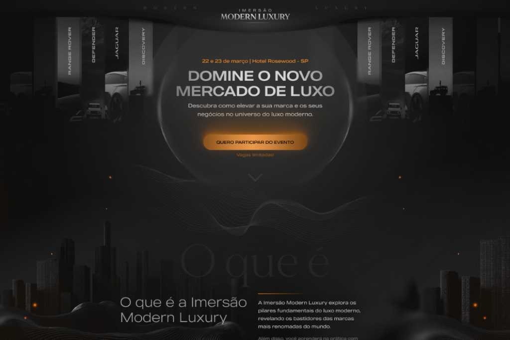 Landing page criada para divulgar o evento especializado no mercado de luxo moderno.